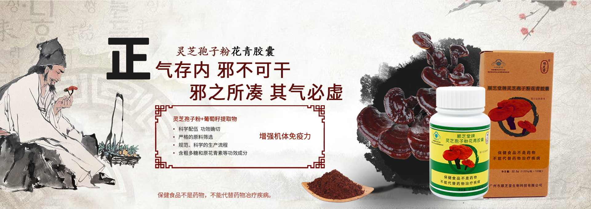 廣州市順芝堂生物科技有限公司成立于2003年,是經國家工商局批準,以弘揚中醫藥養生文化,從事生命健康產業,集科研開發、健康咨詢、生產銷售于一體的科技企業。 公司以大力弘揚中醫藥養生文化,實現“健康青春順芝堂”的目標為企業宗旨;堅持“以人為本,追求卓越、臻于至善”的企業精神;探索實踐產品與技術相結合的順芝堂特色的養生之路。遵循“讓消費者獲得健康、讓經營者獲得利益、讓企業得到發展”三個有利的經營原則,堅持以“科技是第一生產力”理論為指導,不斷研發出適應市場需求的的高科技、高品質、高功效的系列產品;